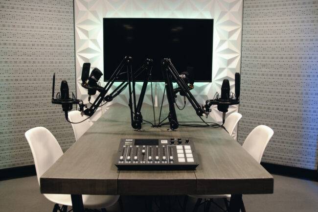 - Stage 2 50′ x 27′ White cyclorama and live stream soundstage