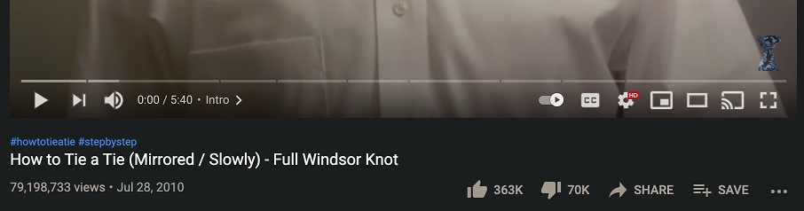A classic example of a video that has persisted throughout the years. You can even see that they added video chapters, a feature on YouTube first introduced last year. Video: How to Tie a Tie by tiehole.